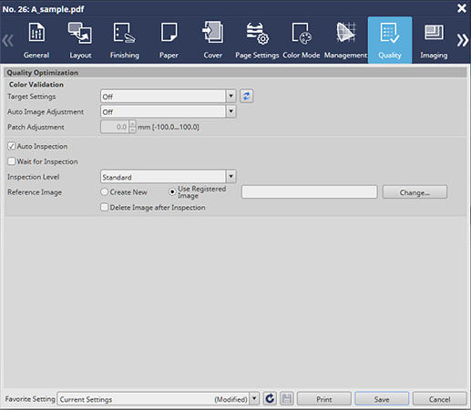 When using reference images that have already been created to perform automatic inspections, select the image from the list and print the job.