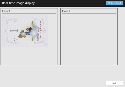 The Real-time image display screen is displayed. If the automatic inspection job is started in this state, the inspected images continue to be updated in real time. If stains or omissions outside the range are detected, [Error Report] is displayed at the top right of the screen.