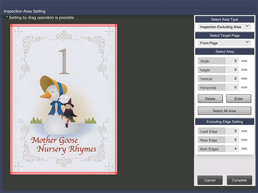 2 | [Select Target Page] | Select the side to which the automatic inspection area settings will be applied. For details, refer to [Select Target Page]. |