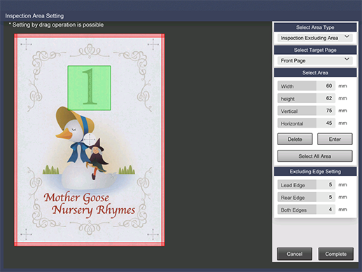 Set the areas that you do not want to be covered in the automatic inspection, or the areas you want to apply a special inspection such as when you want to modify a part of an image for printing, such as variable printing.