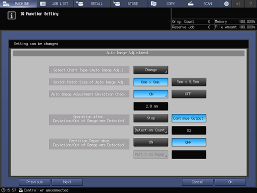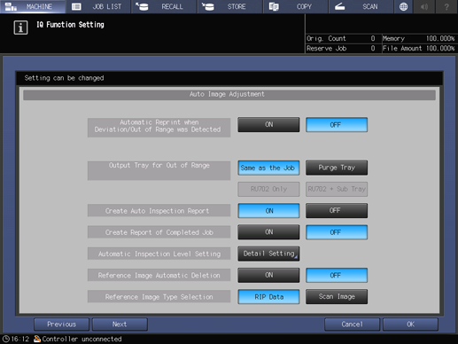 [Automatic Reprint when Deviation/Out of Range was Detected] | [OFF] |