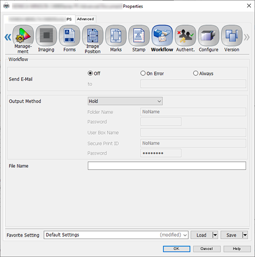This section describes the procedure for holding a job using the PS Plug-in Driver and configuring the settings using system’s Touch panel.