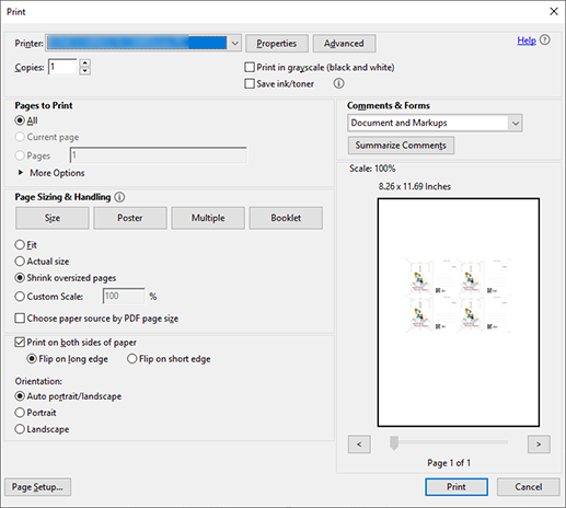 In this example, the print job, including all repeat parts are printed from [Printing Pages] in the [General] tab.