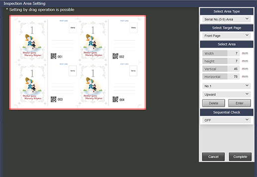 1 | [Select Area Type] | For example, select [Serial No. (0-9) Area] |