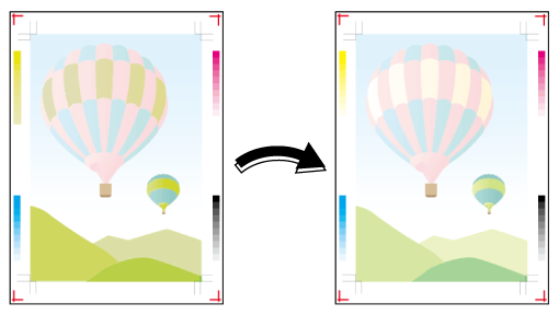 Check to see if the crop marks and gradation patches are correctly printed in the white section of the trim margin.