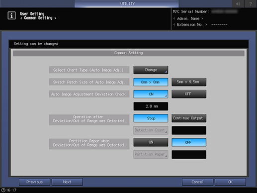 You can perform advanced settings of Auto Image Adjustment function using [IQ Function Set.] on the [MACHINE] screen, or using the system’s Utility/Counter - [Common Setting].