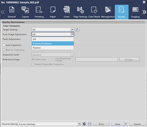 Select the [Quality] tab, and set [Auto Image Adjustment] to [Position/Gradation].