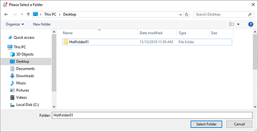 Creating a hot folder using AccurioPro Hot Folder allows you to print files simply by copying them to the folder.