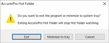 Select [Exit] to exit AccurioPro Hot Folder. The hot folder cannot be used at this point.