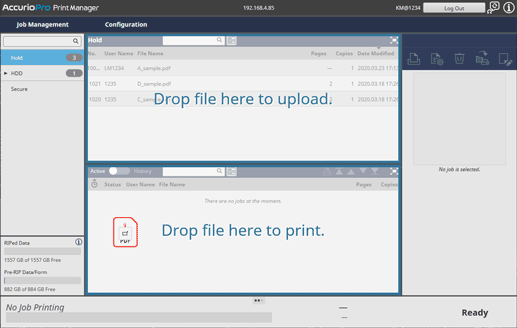 You can print the files on your computer simply by dragging and dropping them into the AccurioPro Print Manager [Active] job list.