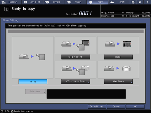 Proceed to Step 5 if you select [HDD Store + Print] or [HDD Store].