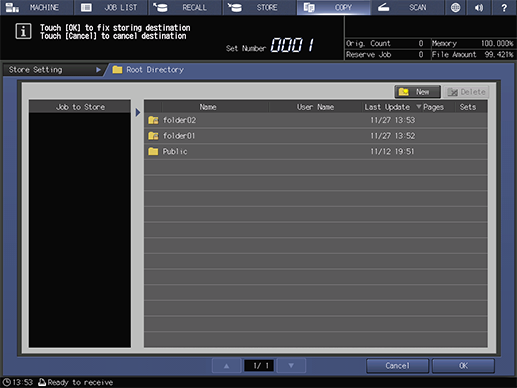 Select a folder or box to store the job in, and press [OK].