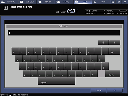 Up to 64 double-byte or 127 single-byte characters can be entered for the file name.