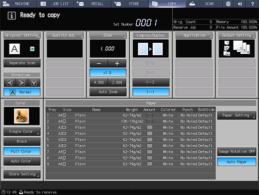 You can hold or store the data scanned with ADF or Original glass on the machine's HDD as copy jobs or scan jobs using the system's Touch panel.