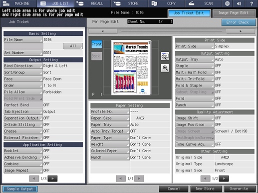 The selected job is scanned, and the [Job Ticket Edit] screen is displayed.