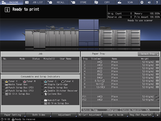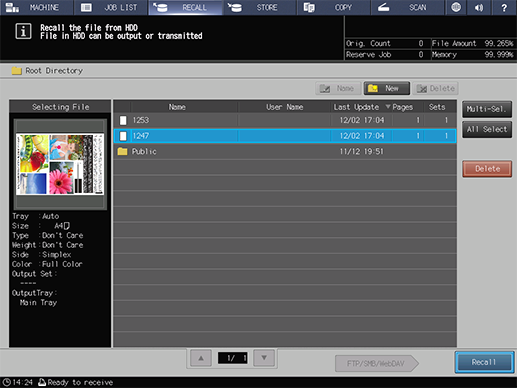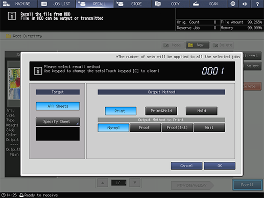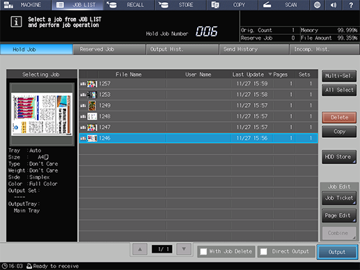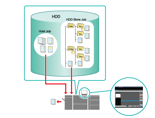 Print hold jobs and HDD store jobs using the system’s Touch panel.