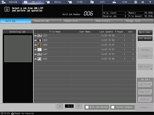 Press [All Select] when you want to select all jobs. All jobs are selected and [Multi-Sel.] is inverted instead.