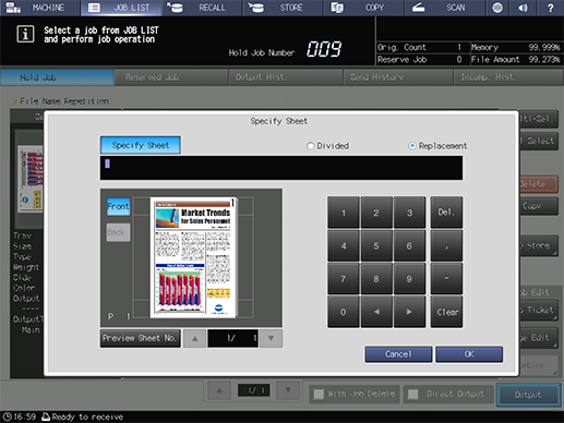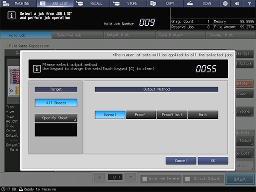 If multiple jobs are selected, [Specify Sheet] is not available.