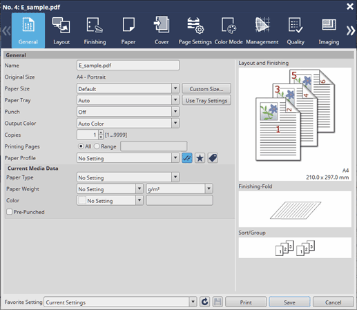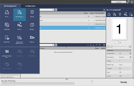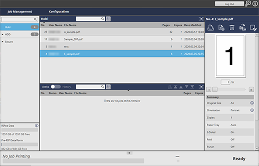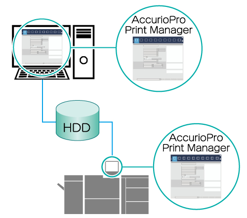 Use AccurioPro Print Manager to edit the print settings of secure jobs or hold jobs stored on the Image Controller HDD.