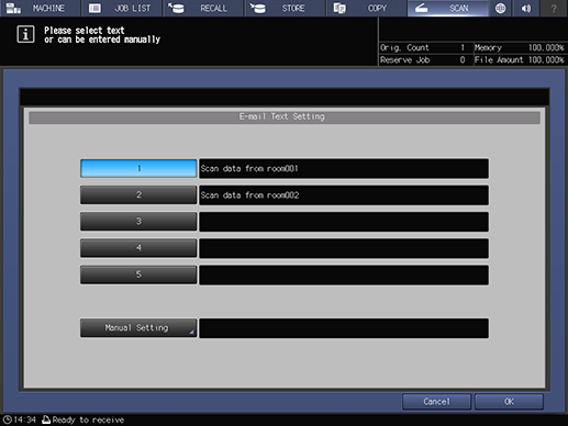Up to 5 main texts can be registered. For details about registering main body text, refer to [E-mail Text Setting].