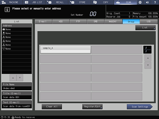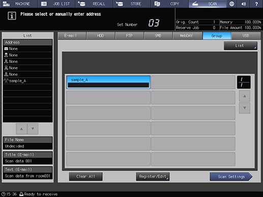 Press [Edit] on the [Group Address List] screen to change the destination to be registered in the group.