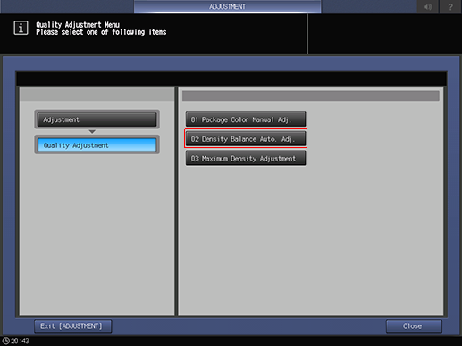Press [Exit PrintMode] to return to the [Density Balance Auto. Adjustment] screen.