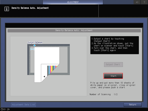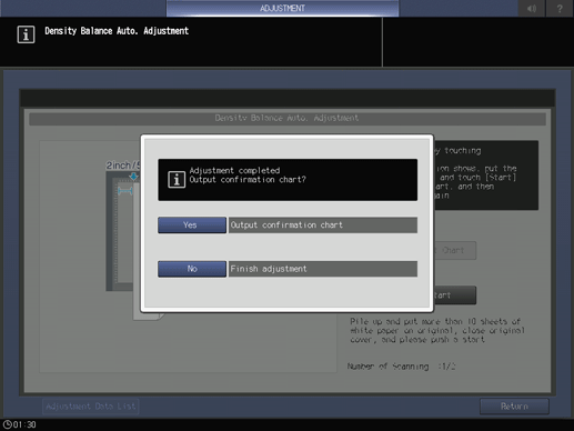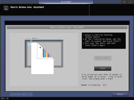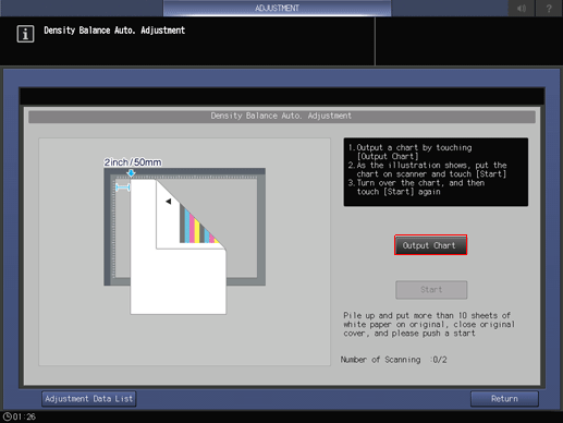 The chart is output and the [Density Balance Auto. Adjustment] screen is displayed.