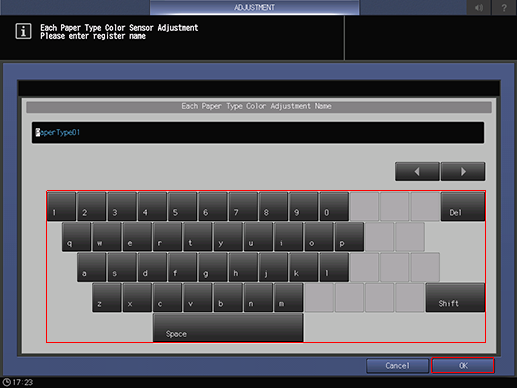 Fill in [Register Name] for paper wise color adjustment and press [OK].