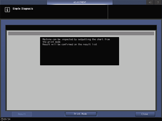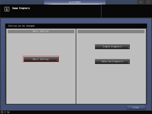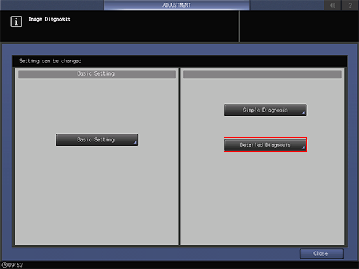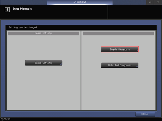 Machines mounted with Intelligent Quality Optimizer IQ-501 can run a diagnosis to find the causes of various defects on images including lines and spots (white and colored outlines, black and white blots and marks) using the [Image Diagnosis] feature. You can then make various adjustments based on the results of the diagnosis to try and improve the stability of the image quality.
