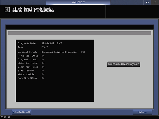 Press [RunDetailedImageDiagnosis] to perform [Detailed Diagnosis] for the items diagnosed as [Recommend Detailed Diagnosis].