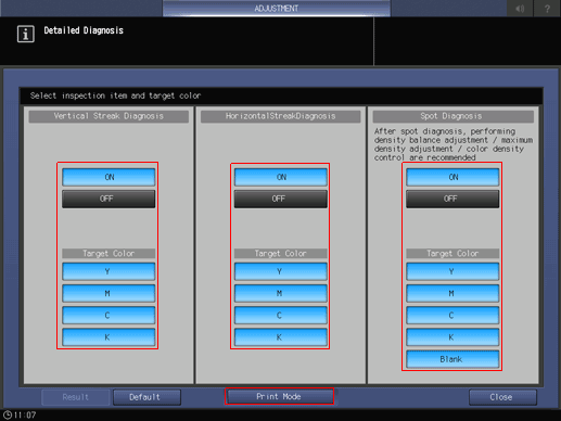 If Default is selected, [ON] and [Target Color] are selected for each diagnosis item.
