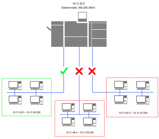 Use the subnet mask and IP address configured to the machine or Image Controller to allow access only to those within the range of IP address belonging to the same sub network.