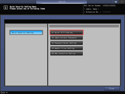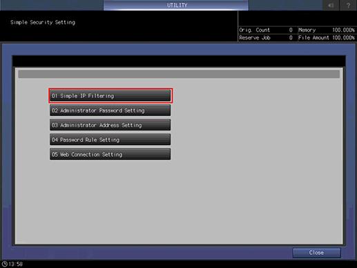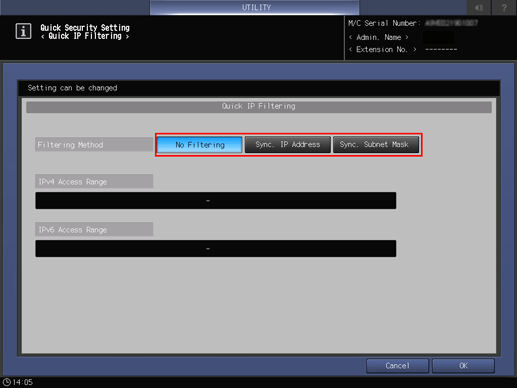 Configure the settings as detailed below to restrict the range of IP addresses that can communicate with the machine.