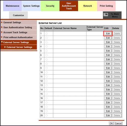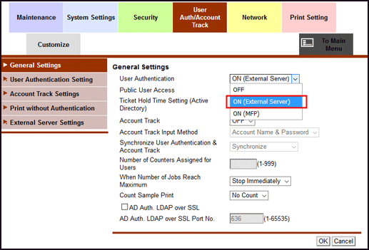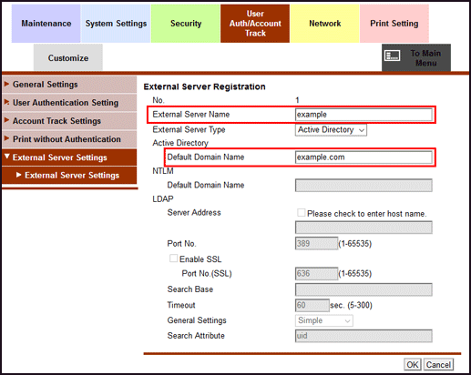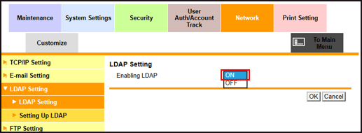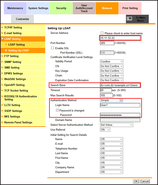 Configure the settings on the machine side so that it can be connected to the server. Settings other than the LDAP settings detailed here are required to use external server authentication. However, you only need to configure the LDAP settings detailed here to perform an LDAP search.