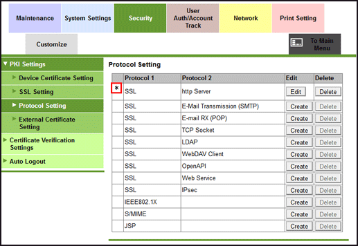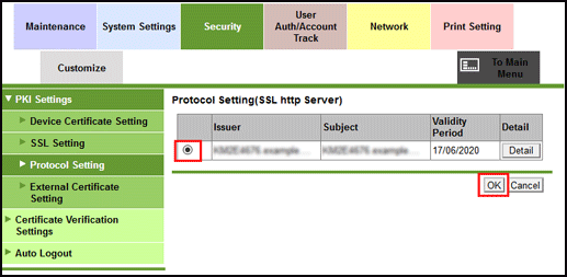 Log in to Web Connection on the Image Controller as an administrator to configure the Image Controller SSL settings and perform setting using the procedure same as this system.