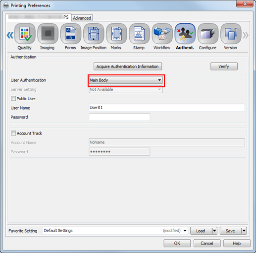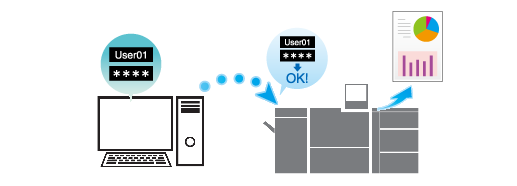 If you enter a username and password not registered on the machine using [User Authentication] and try to print, or if you do not select [User Authentication] and try to print, the system does not authenticate and the job is discarded.