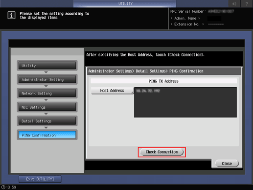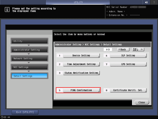 Press in order of [For-ward] - [Detail Settings] - [PING Confirmation].