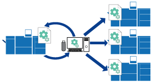 Storing as back up data | Using for management and analysis | Use on other machines Streamlining settings operations Sharing and unifying data | |
