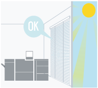 ![]() | Do not place air conditioning units or humidifiers next to the system. Excessive air conditioning and humidification can damage the system and paper. Be sure to place any air conditioning units and/or humidifiers away from the system. |