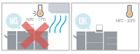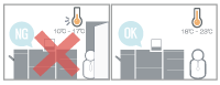![]() | Check the temperature and humidity of the location at which the system is installed. Recommended environment Room temperature: 21°C to 26°C Humidity: 40% RH to 60% RH Usage in environments other than those detailed above may have an impact upon the performance of the system. |