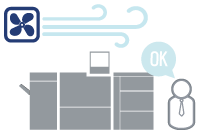 ![]() | Check the system is adequately ventilated. The system generates heat and paper dust when being operated. The smell of air discharged from the ventilation port may become noticeable when the system is used continuously for long periods, or when copying or printing in high volumes. In order to maintain a comfortable operating environment, be sure to provide adequate ventilation while maintaining the recommended temperature and humidity levels. |