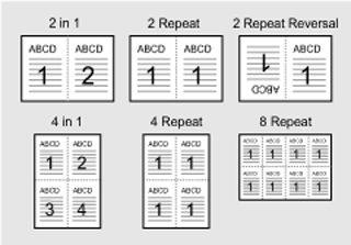 You can combine and print 2 or 4 pages onto one sheet. You can also print 2 or 4 copies of the same page onto one sheet. The upside of the page can be turned down when printing 2 copies onto one sheet.