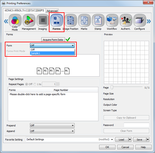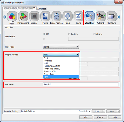 Select [Form] in [Output Method] on the [Workflow] tab.