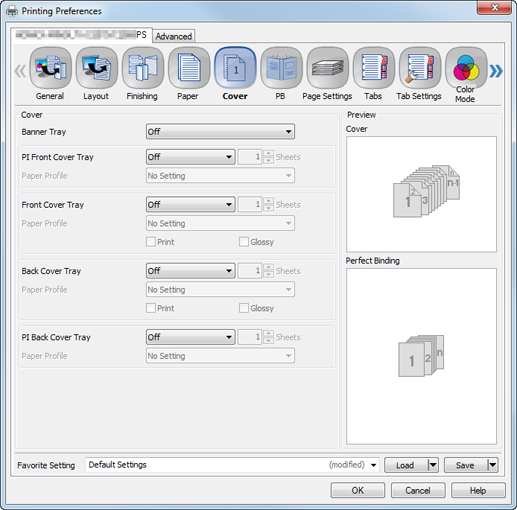 [Paper Profile] (Back cover sheet) | [Unspecified], Registered paper profile | Select predefined paper profile. You can add a new paper profile to the list from the touch panel on the machine. |