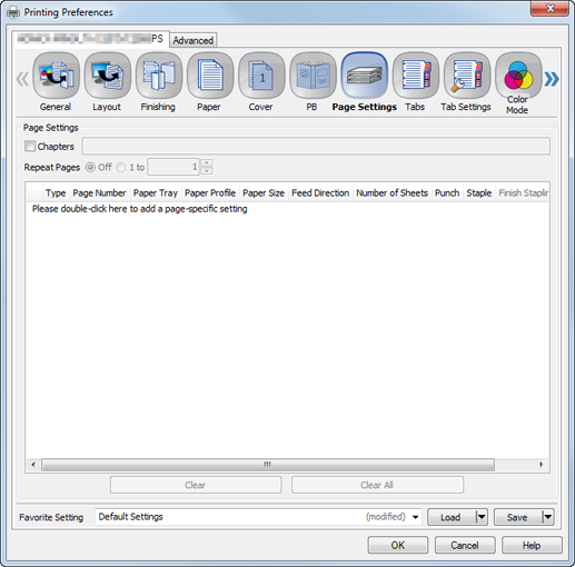Per Page Settings | [Type] | Set a print type for a page specified in [Page Number]. Select [Same as Body] to apply the setting for the original. |