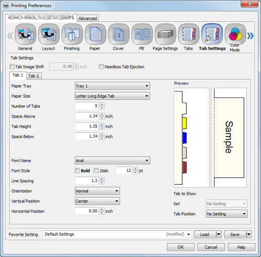 [Tab Height] | 2.5 mm to 297 mm (For A4 Long Edge Tab) 2.5 mm to 279.4 mm (For Letter Long Edge Tab) | Input the value for [Tab Height]. The maximum value for the height is the value when [Space Above] and [Space Below] are 0 mm. The maximum value that can be specified changes according to the values of [Space Above] and [Space Below]. |