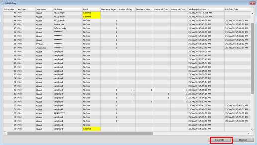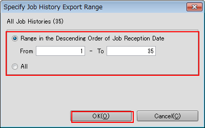 Specify the export range of the history records by indicating start and end points or select the [All], and click [OK].