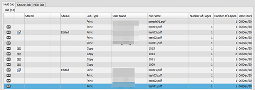 [Date Stored] | Displays the date and time when the job was registered in Hold Job. |