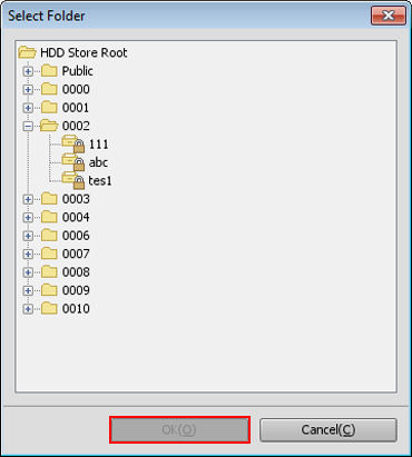 • If selecting the folder where password protection is set, enter the password in the following screen to be displayed, and click [OK].