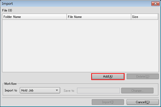 With the same operation as step 2 and step 3, display all jobs you want to import on the list of the [Import] screen.